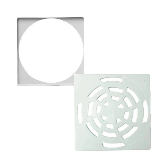 RALO DE BANHEIRO QUADRADO 100 MM BRANCO COMPLETO GRELHA E PORTA GRELHA LUCONI